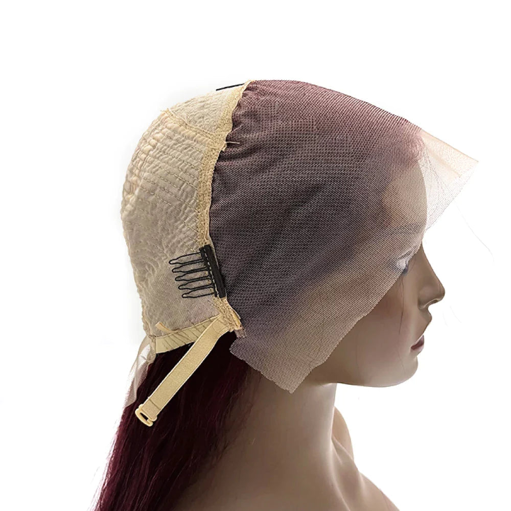 Tedhair 24 Inches Burgundy 13"x4" Lace Front Straight Wig Pre-Plucked Free Part 150% Density-100% Human Hair